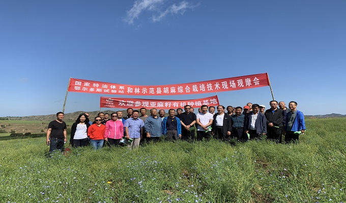 8月25日,內蒙古農科院、國家胡麻產業技術體系鄂爾多斯綜合實驗站,千畝亞麻籽高產種植示范園觀摩會在和林縣黑老夭鄉內蒙古萬利福有機亞麻籽種植基地舉行。